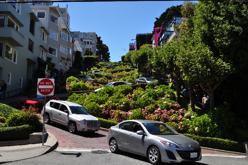 せっかくだから花が咲いてる時期に行きたいねって言ってて、ずっと行ってなかったロンバートストリート!急勾配の道にZ字状の8つの急カーブのある、別名『世界一曲がりくねった坂道・The Crookedest Street in the World』( ̄▽ ̄;)