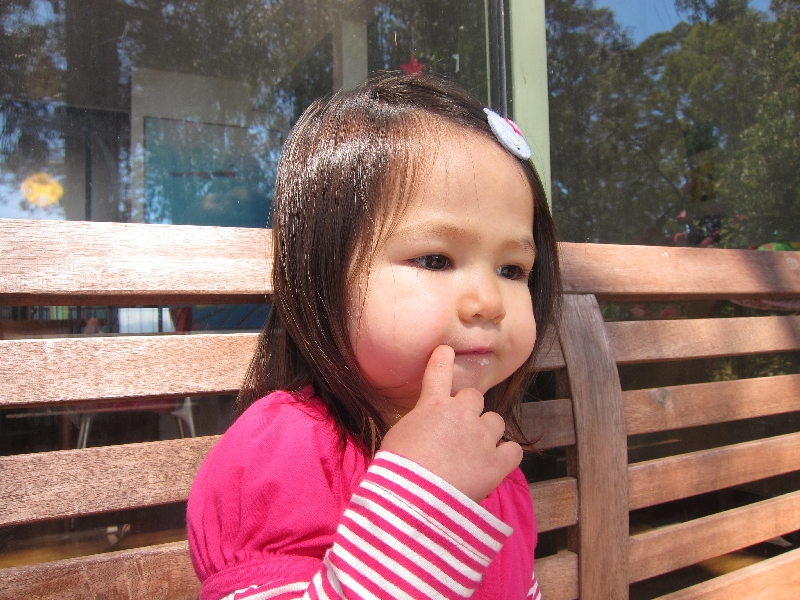 私に“Hey, come here”って言われるとヤバイ雰囲気を感じるのか、とりあえず来る。でも“Look at me”って言っても、なかなか目を合わせようとせず俯く、、、で泣く準備を始める…と。私は泣いても許しませんが?