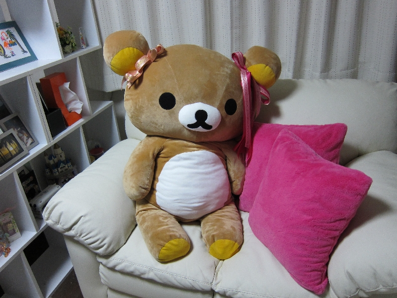 リラックマ病院を退職したとき、同期の新○サンに貰った大好きなクマさん♪ でも…なんなら私よりデカい。。。ソファー占領して、もう部屋の主(^皿^) もちろん、お留守番デスm(_ _)m