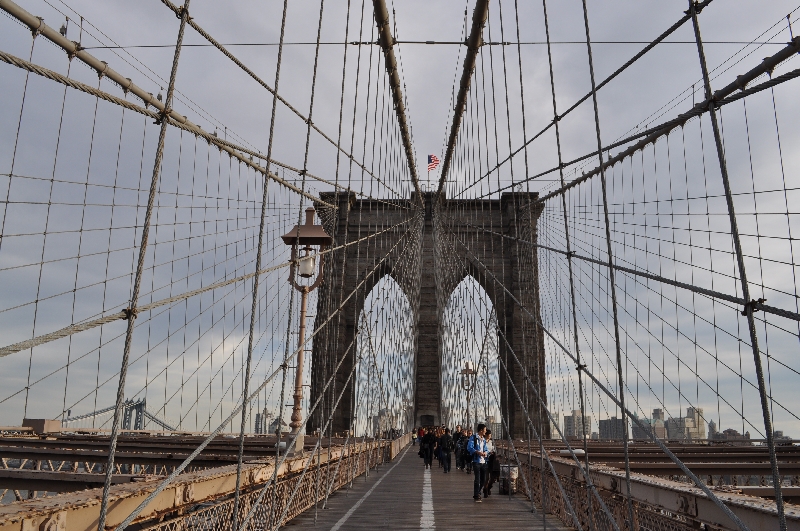 上は歩行者、下は車専用せっかくロウアーマンハッタンまで行ったのでブルックリン・ブリッジを歩こうと。行きは地下鉄でブルックリンまで行っちゃって、帰りの片道だけ歩いて渡ってきました♪