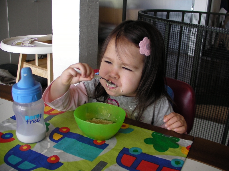 最近のペネっちは、、、それなりに食べてます。でも自分で食べるのは最初だけ。あとは食べさせれば食べるけど、遊び始めたり、口は開くし食べるのに飲み込まない。