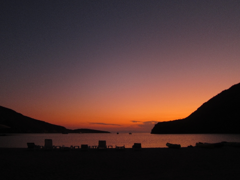 無人島キャンプサイトからの夕焼けキャンプサイトにもう1泊?