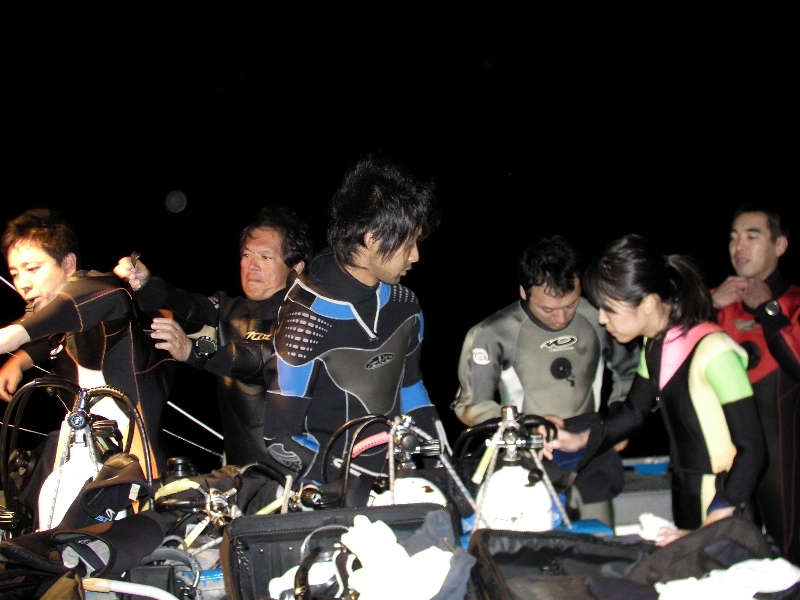 日付が変わるのを待って入水!こんなラフなことは滅多にないってくらい大荒れな海、、、全員船酔い(笑)最後まで吐かなかったのは12人中3人!私は2回酔い止め飲んで意外と元気だった☆★