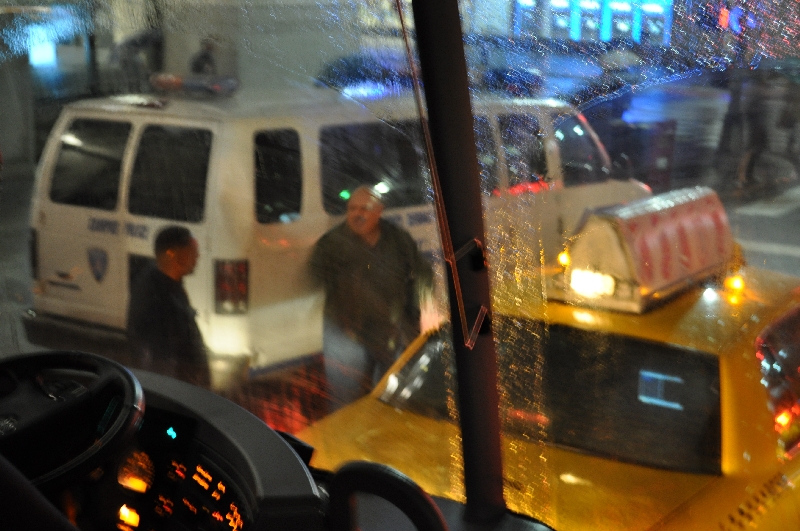 ケンカ後の残骸とヘコんだタクシー やっと警察の登場…私たちも署名させられました