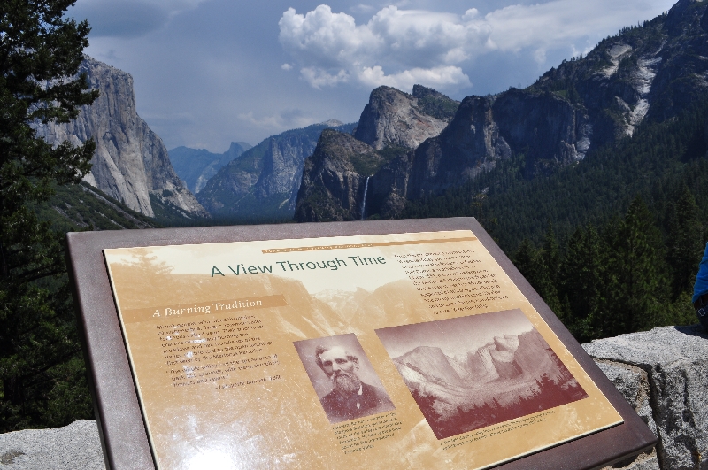 ツアーでは必ず立ち寄るトンネルビュー☆★ ヨセミテを代表する風景、、、左にはロッククライマーの憧れらしい高さ1095mで世界最大の一枚岩・エルキャピタン、右には花嫁のベールのように白い霧が広がる高さ189mのブライダルベール滝、針葉樹林に覆われた谷の奥には高さ1443mのヨセミテのシンボル岩壁・ハーフドーム! ガスっててちょっと残念だったけど、壮大な景色でした。。。